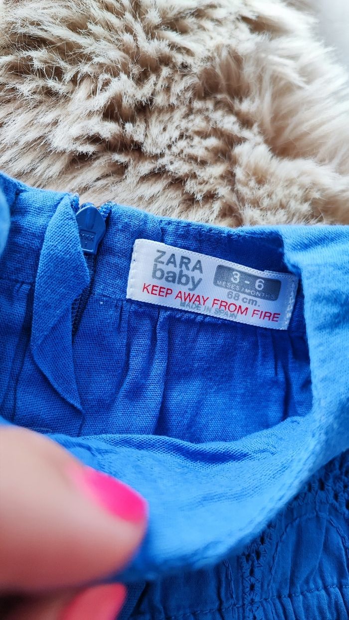 Robe bleu avec fermeture éclair dans le dos. 100% coton De la marque Zara En taille 3/6 mois En très bon état maison non fumeur #laetitia33700filletroismois