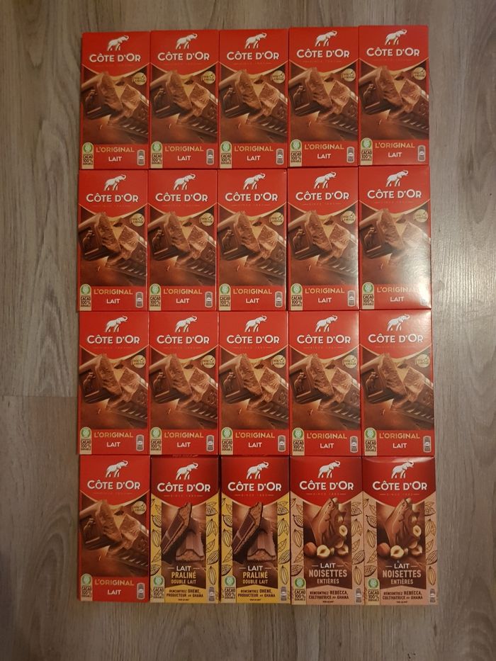 Vend un lot de 20 tablettes côte d'or