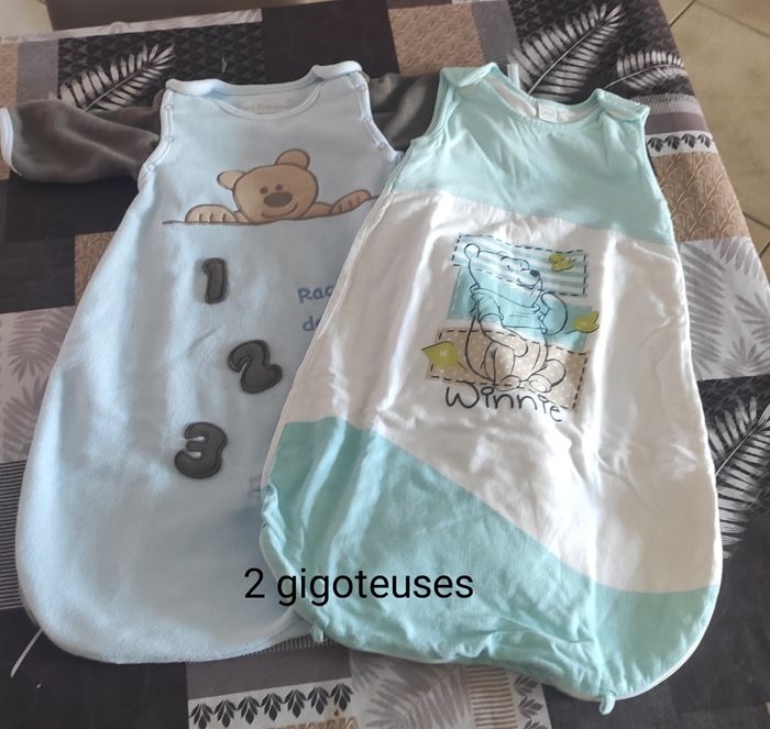 2 gigoteuses en très bon état La Winnie l'ourson est une taille unique idéal pour la mi-saison ou l'été Celle avec le petit ours à les manches qui peuvent se mettre ou sans lever grâce à des pressions elle est en polaire fine Ces articles peuvent se vendre à l'unité pour plus de renseignements aux photos merci de bien vouloir me contacter une catégorie on avait