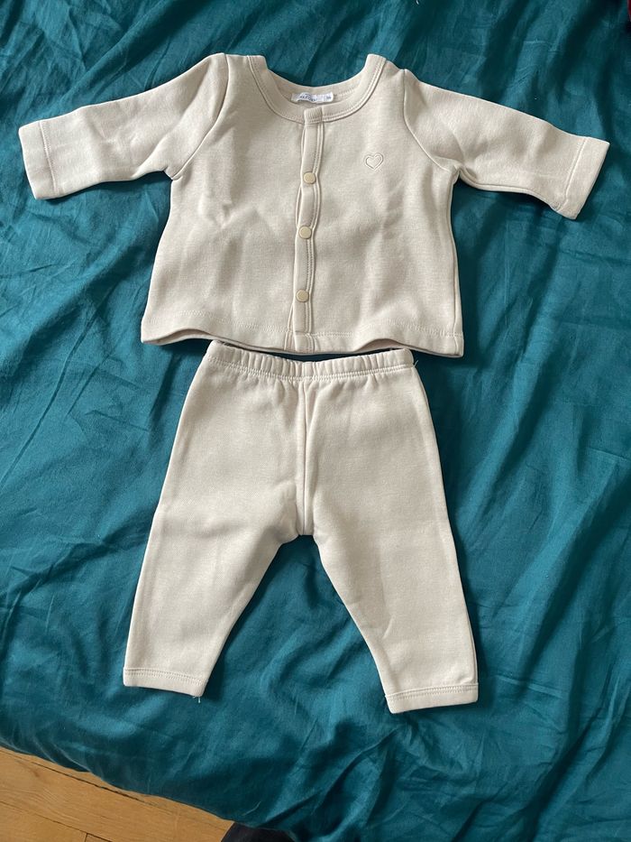 Ensemble lavé et étiquette retirée mais jamais porté car bébé trop grand.