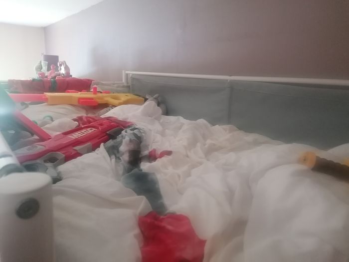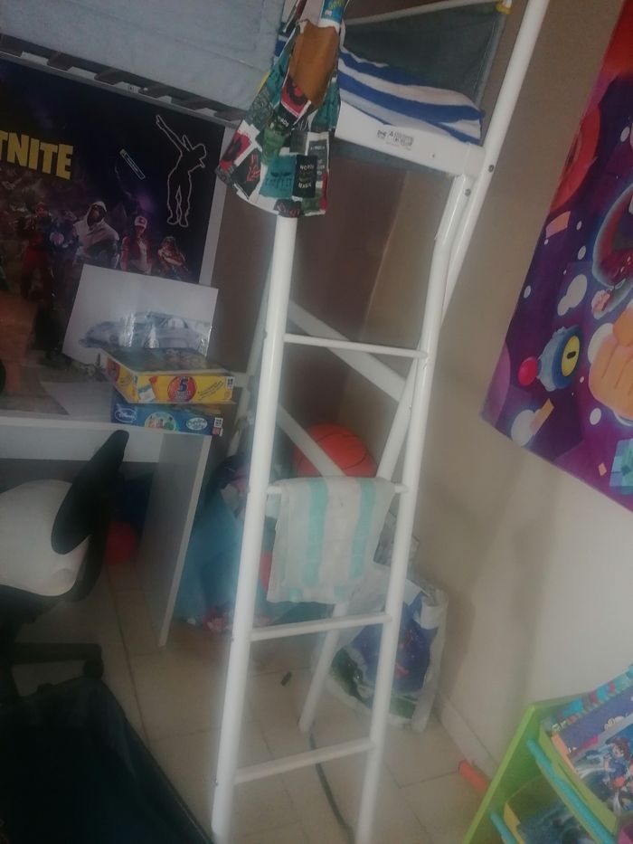 Lit en hauteur. Très peu servi. Possible de mettre un bureau en dessous Vendu sans matelas
