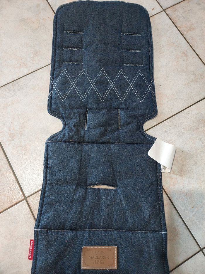Bonjour Je vends cette housse/doublure de siege universel Marque maclaren Très bon état Respirant Reversible et lavable Facile à installer sur les poussettes 100% polyester