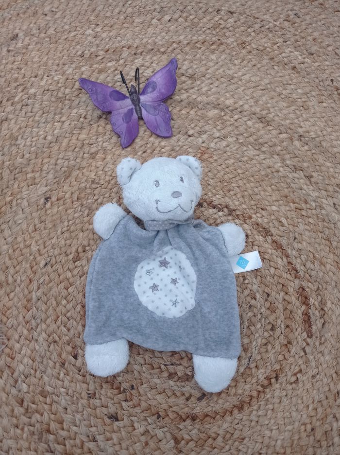 Tex baby Doudou ours Gris Blanc Broderies étoiles Écharpe #douceur_texbabycarrefour C25