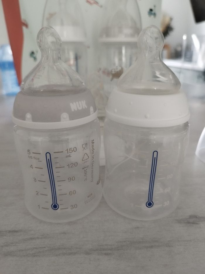 Coffret nuk avec : - 2 biberons de 150 ml - 2 biberons de 300 ml -2 tétines taille S (utiliser 15 jours) -1 tétine taille M (utiliser juste pour un essai) - 3 tétines taille M non utilisées. Biberon en très bon état Vend car ne convient pas à bébé.