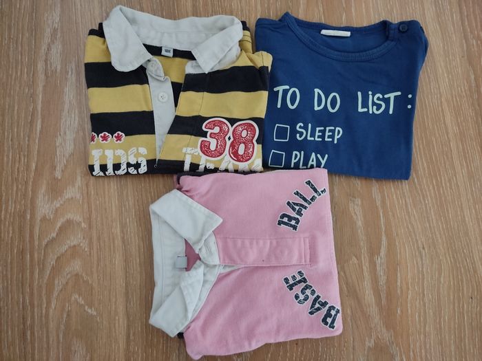 Lot de deux polos avec un tee-shirt manches longues en bon état. Les polos sont de marque Plus Collection. Taille 18 mois.