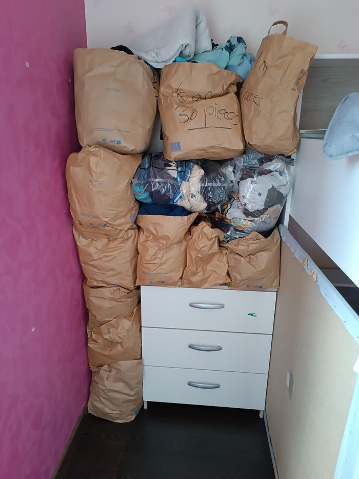 Bonjour je viens de faire du tri dans mes placard je me retrouve avec plusieurs poches d'affaires pour petit garçon de 0 à 6 ans chaque poche contiennent environ 40 articles chacune. Des vêtements d'occasion mais en très bon état quasi neuf