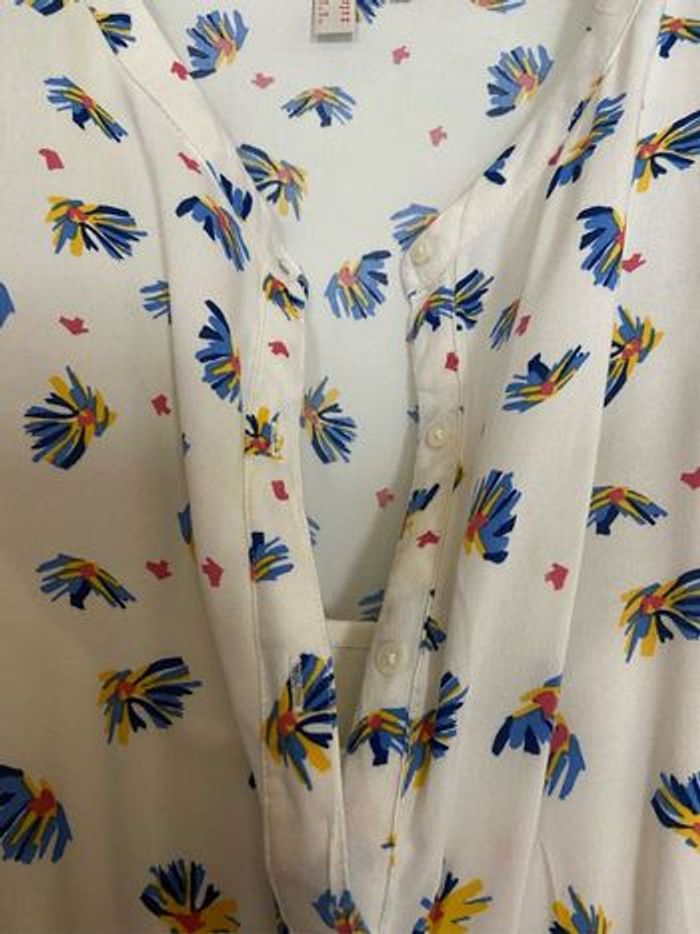 Une petite tache discrète sur le devant de la robe. Je n’ai pas essayé de la faire partir. Cf. Dernière photo