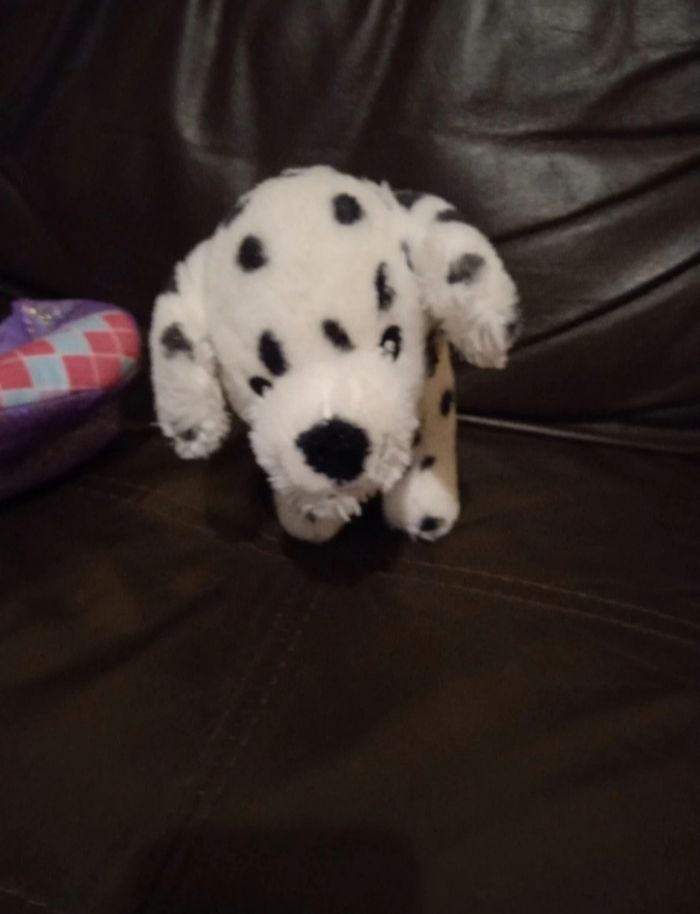 Peluche chien dalmatiens dans son sac en très en état