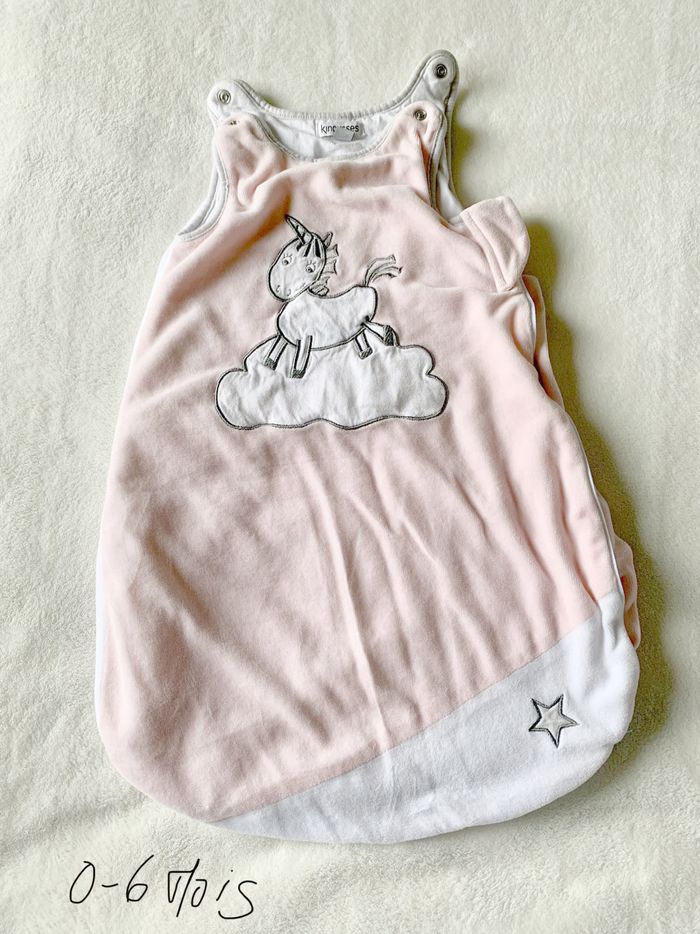 Turbulette /gigoteuse 0-6mois licorne en très bon état. Existe aussi en 6-12 mois et le tour de lit.