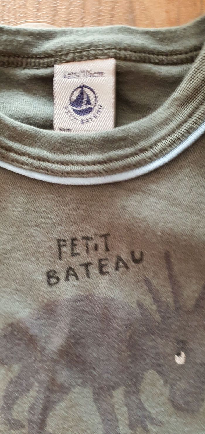 Maillot de corps manches courtes garçon 👦 Taille 4 ans 104 cm Couleur kaki avec dessin dinosaure Marque petit bateau Maison non fumeur Linge lavé avec lessive bébé
