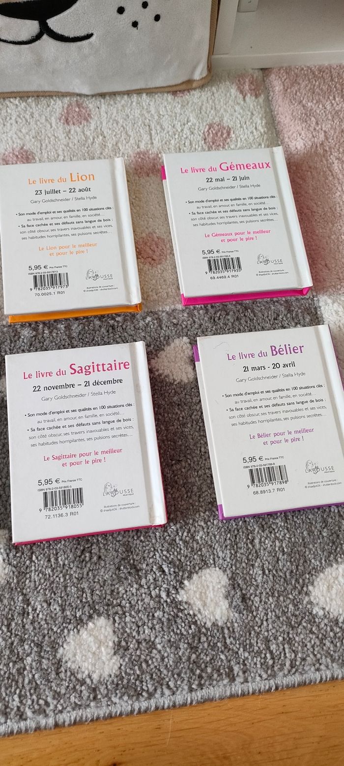 📖 Lot de 8 petits livres sur les signes astrologiques 📖 Larousse 📖 Très bon état général (quelques petites tâches sur les devant ou derrière de couvertures) 📖 Prix du lot en magasin 47,60€