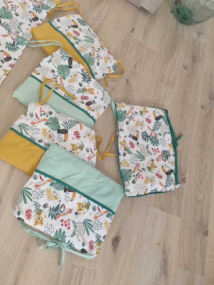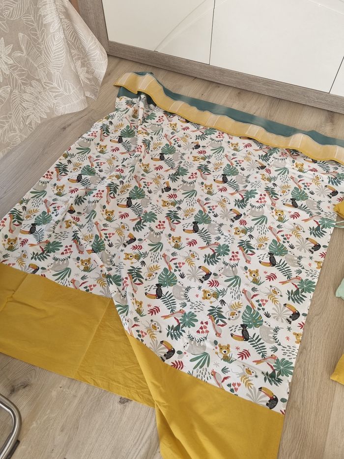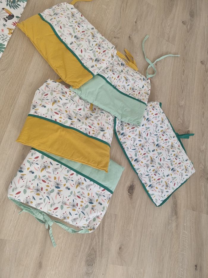 Tour de lit pour lit ou parc en très bon état. Réversible + rideau chambre