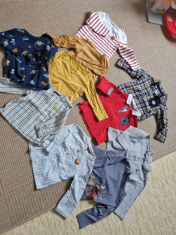 Lot t-shirts et chemise pour garçon 24 mois de plusieurs marques, en très bon état.