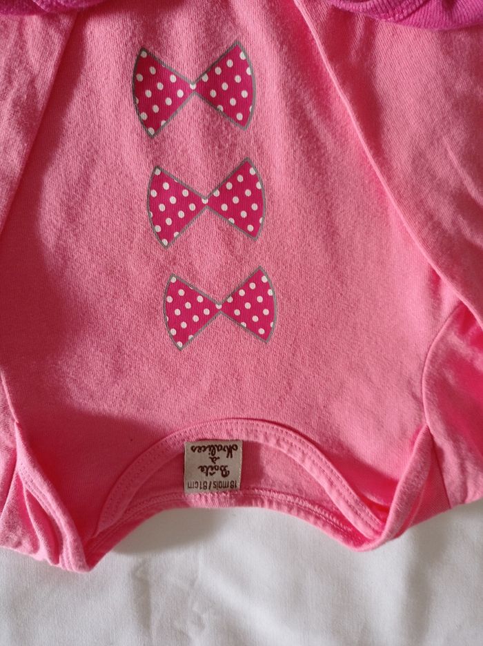 De body manches longues taille 18 mois marque boîte à malice couleur rose clair rose foncé avec motif voir photos - photo numéro 9