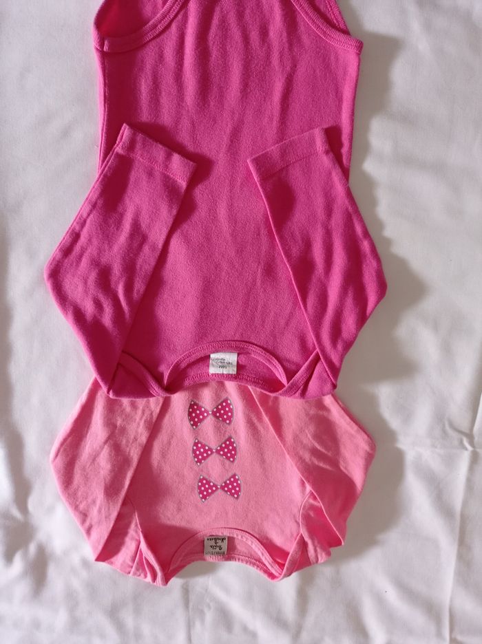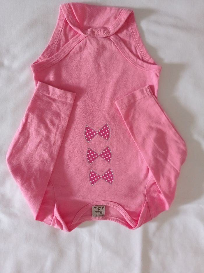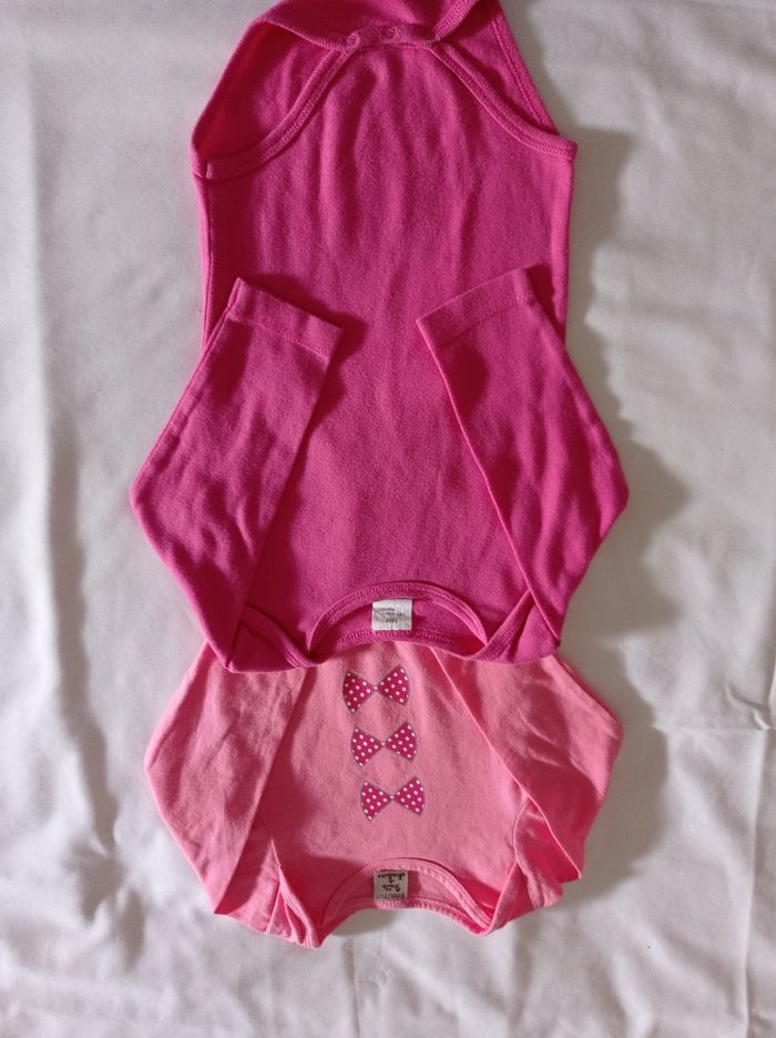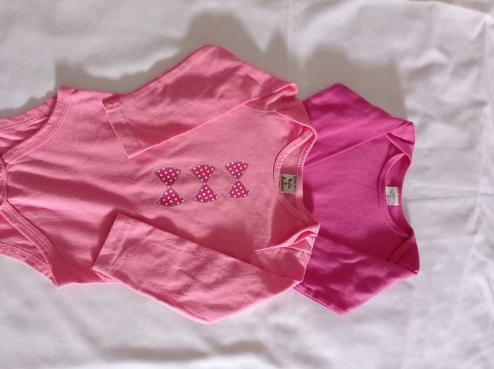 L'eau de deux body pour fille manches longues couleur rose clair rose foncé avec motif devant la marque boîte à malice taille 18 mois voir photos