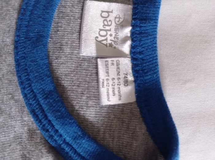 Taille 12 mois body manches longues pour garçon avec motif devant voir photos couleur gris bleu foncé marque Disney baby voir photos