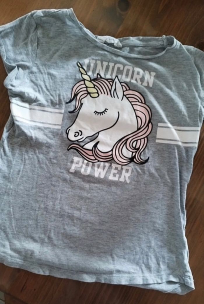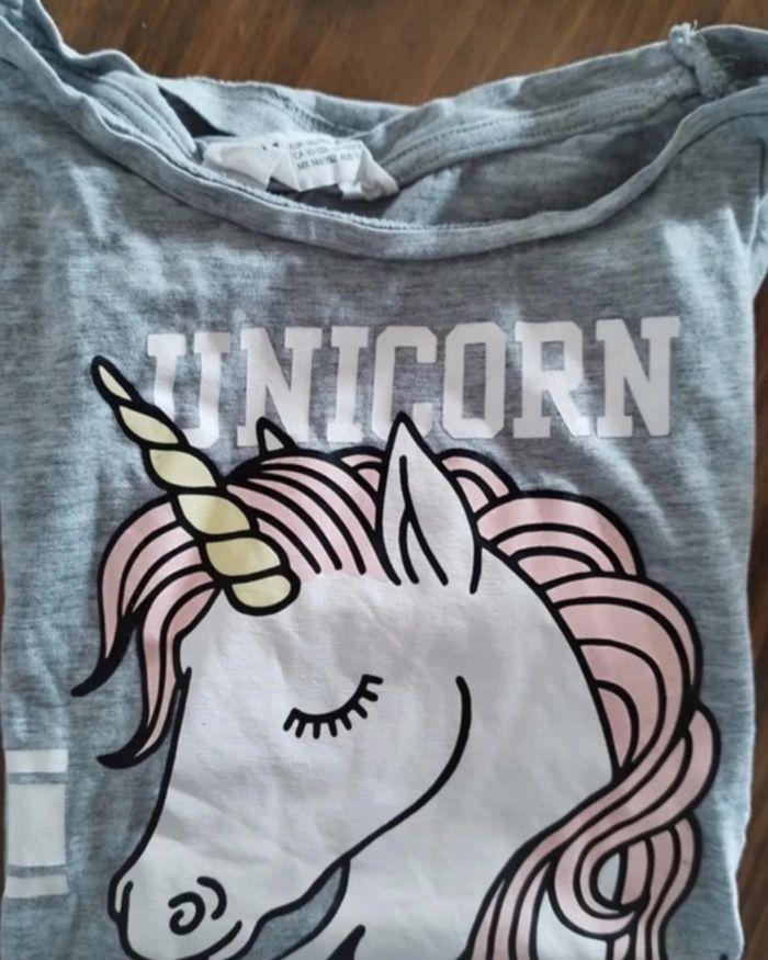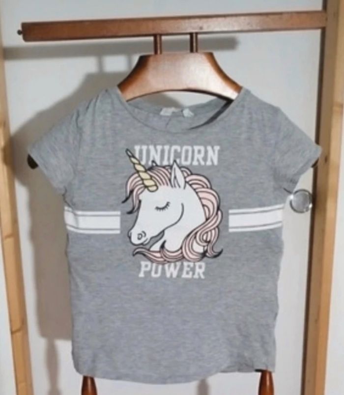 T-shirt gris Licorne 🦄 En très bon état, imprimé ok 👍 Taille 10/12 ans