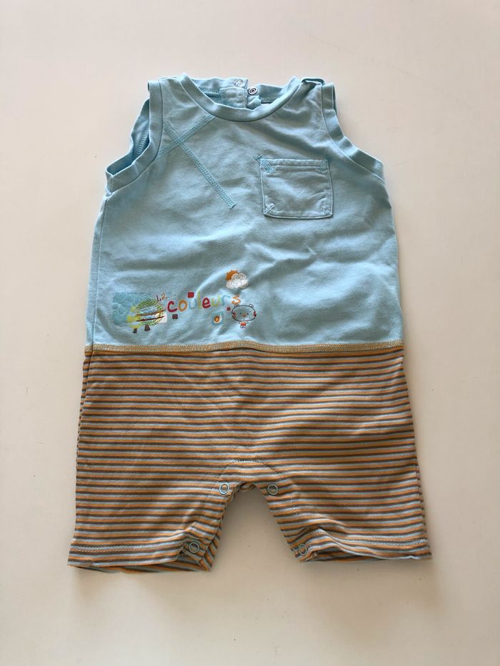 Barboteuse bleu ciel et rayé orange 12M - photo numéro 1
