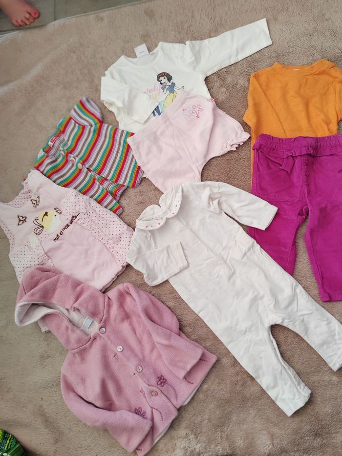 Lot 6 mois composé deux t-shirts, une combinaison, un pantalon, un short, une veste manche longue et un gilet tricot manche courte. Bon état très peu mis Possibilité à l'unité 0.50 €