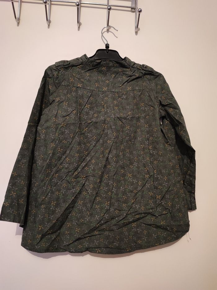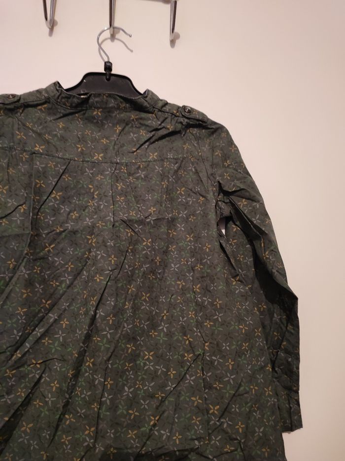 Beau chemisier fille Bouton métal Manches longues qui peuvent se retrousser Coloris vert kaki imprimé Taille 7 ans
