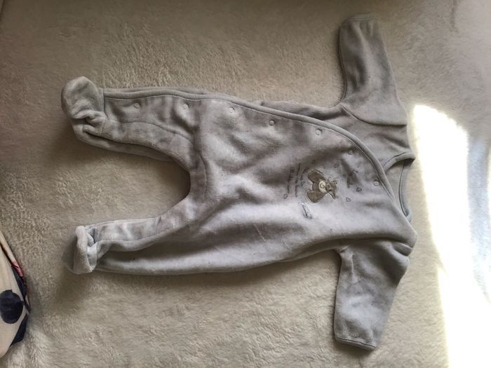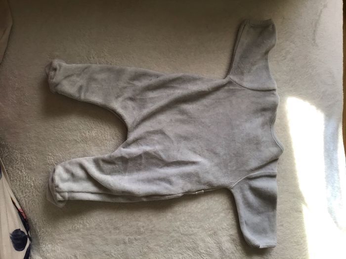 Pyjama épais garçon en très bon état de taille 0 mois et de couleur bleu pâle.