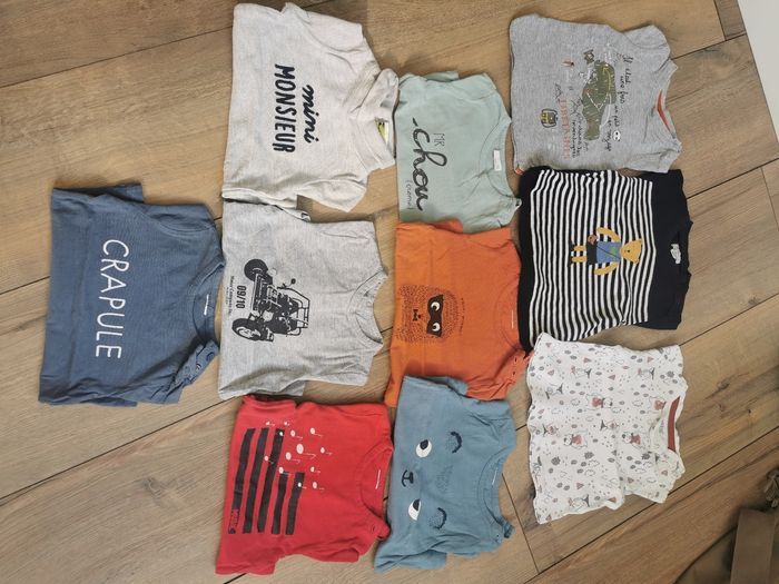 Vends un lot de 12 t-shirts manches longues de taille 6 mois en très bon état. Les t-shirts peuvent être vendus individuellement sur demande.