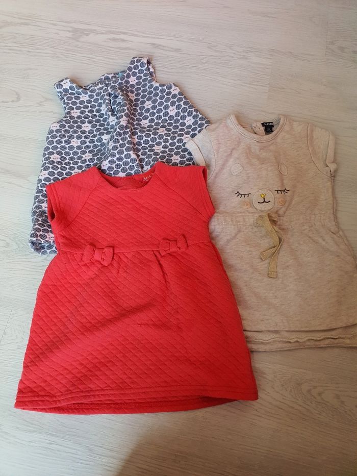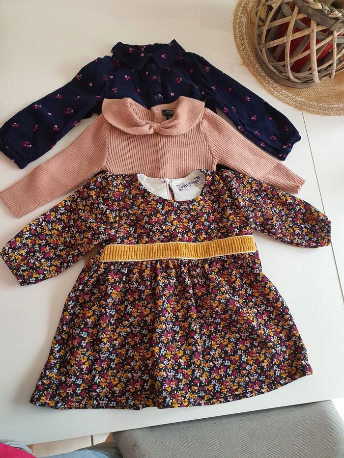 Lots de vêtements 12 mois En très bon état 8 robes 2 t-shirts manche longue 1 manche courte 18 mois mais taille petit 1 pyjama velours