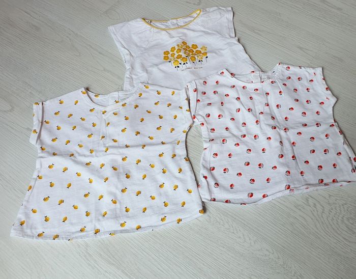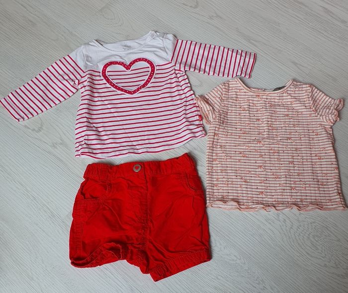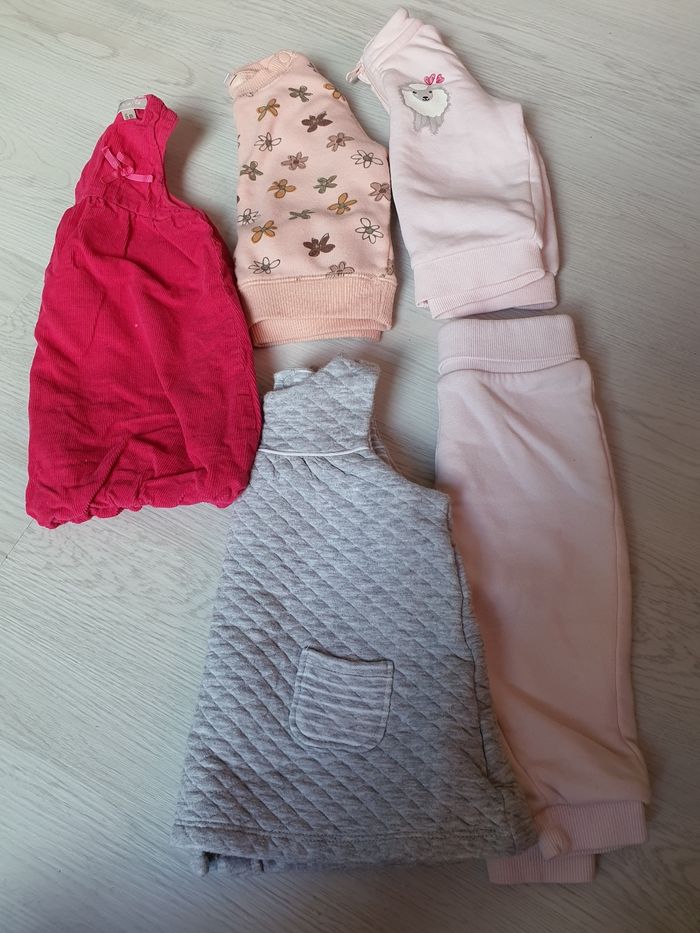 Lots d'environ 25 vêtements 6 mois en très bon état. Pyjamas léger, ensemble, short, leggins, jogging et veste, pull, Robes. Il n'y pas tout les vêtements en photos