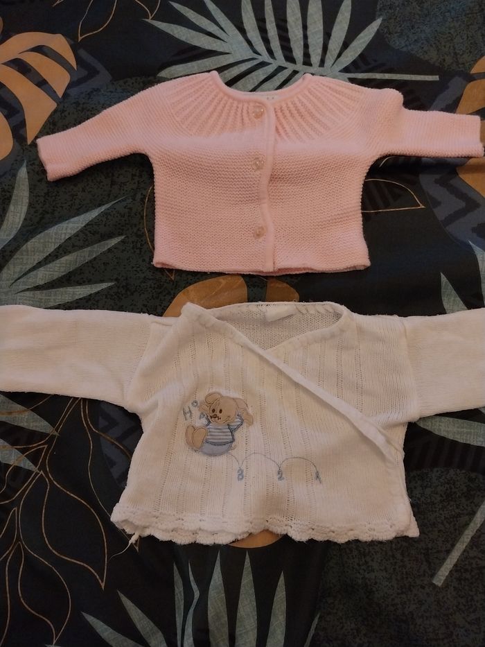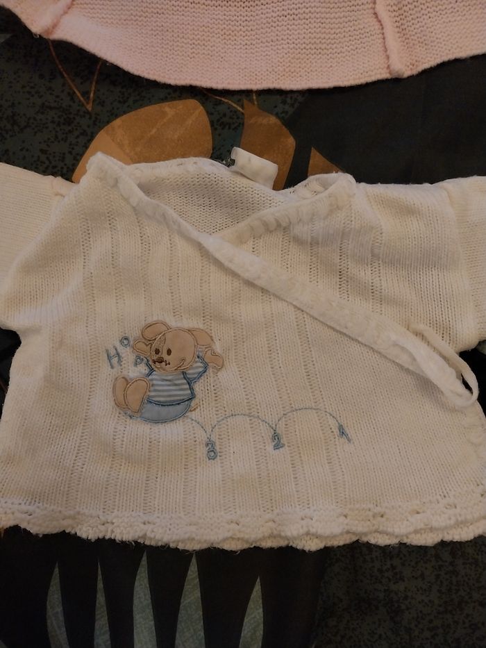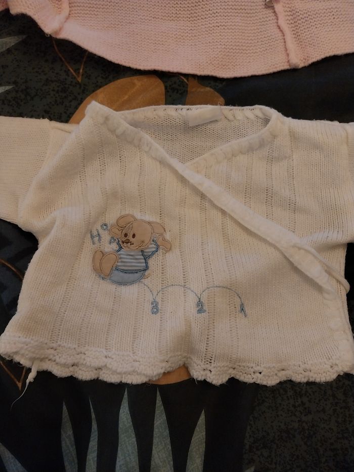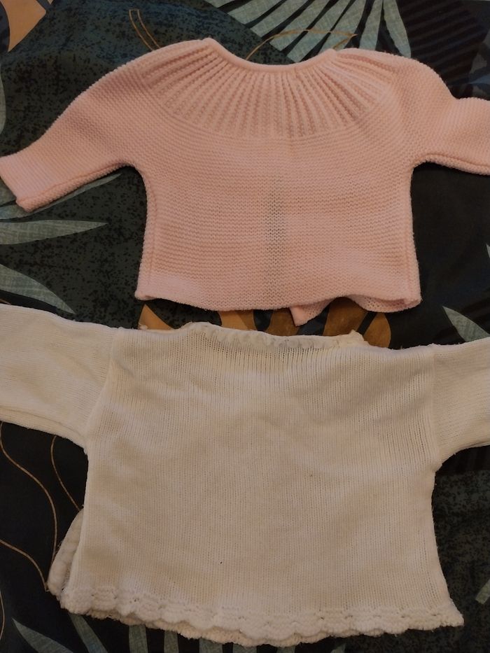 lot de 2 laines de naissance Le rose très bon etat pour naissance à 1 mois Le blanc 1 mois léger bon etat