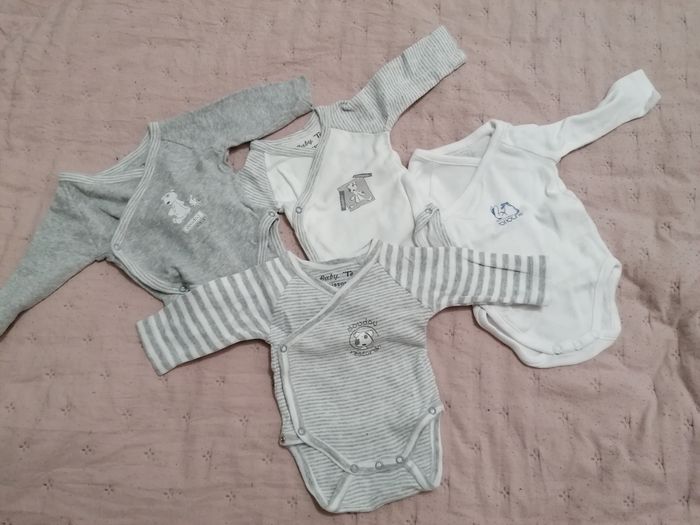 Vends lot de layettes taille naissance. Lavé et non tâché. Maison sans animaux et non fumeur.