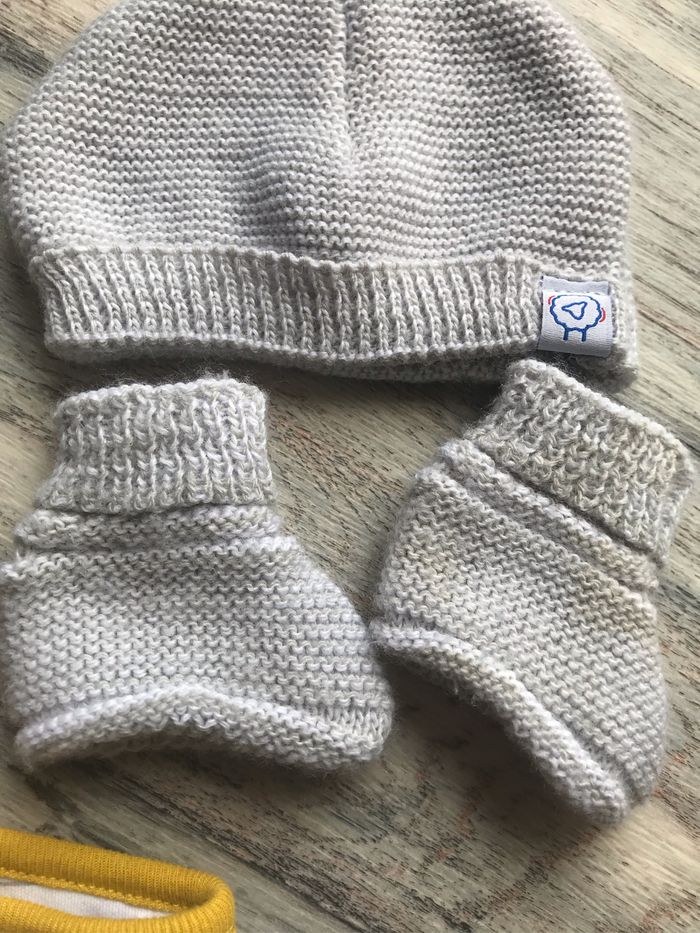 Ensemble bonnet +chaussettes +chausson + bavoir - photo numéro 1