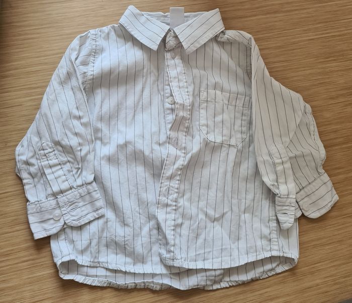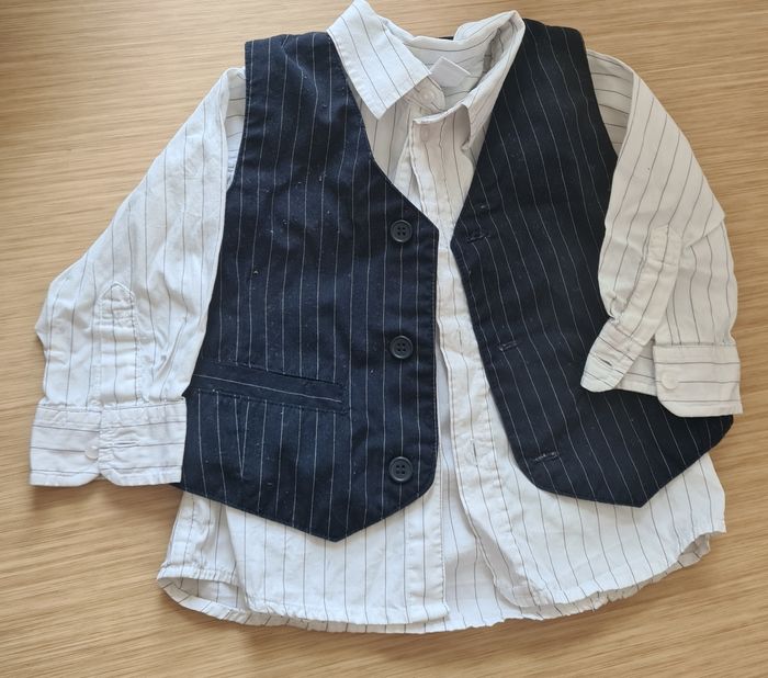 Vend chemise blanche avec sa veste bleu marine de la marque H & M en taille 18 mois (veste - 86 cm et chemise - 80 cm)