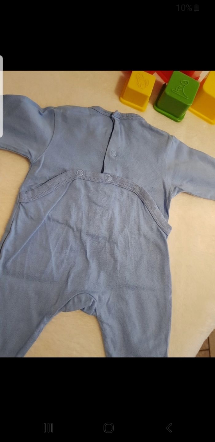 Pyjama fin avec pieds. Fermeture par pressions à l arrière. Tissu usé par les lavages