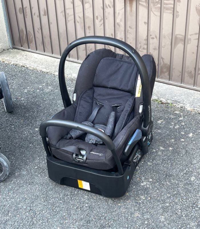 Tres bon état complet avec protege pluie + base isofix Peut utilise Le tout sera nettoyer avant achat
