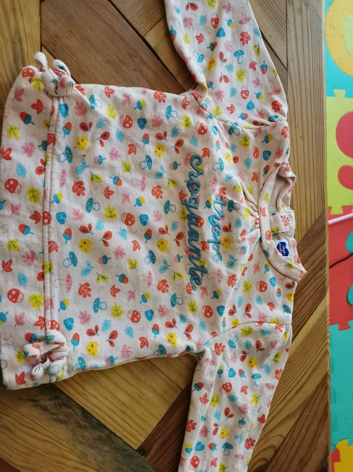 Joli pull fleuri et champignons, taille 6 mois, très bon état, mots d'enfants