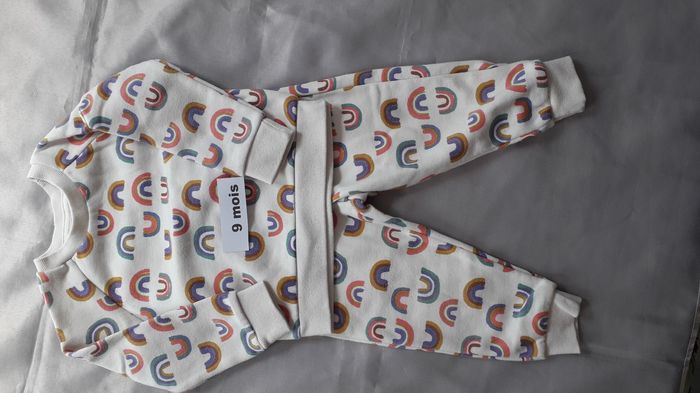 Ensemble survêtement fille motif arc en ciel Porté, bon état, rien à signaler Taille 9/12 mois/80 cm