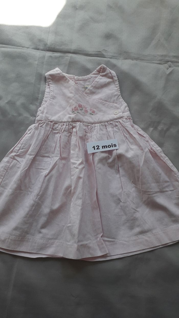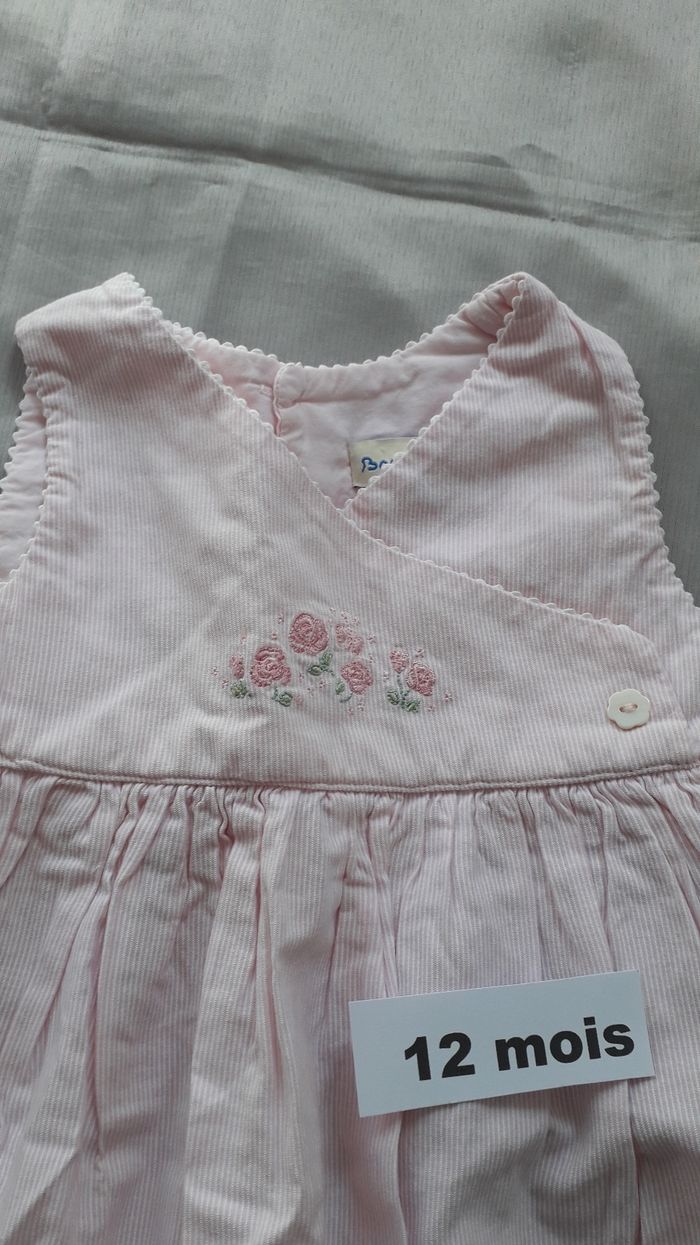 Très belle robe vintage, rayée rose et blanc et broderies Peu portée Taille 12 mois Vintage