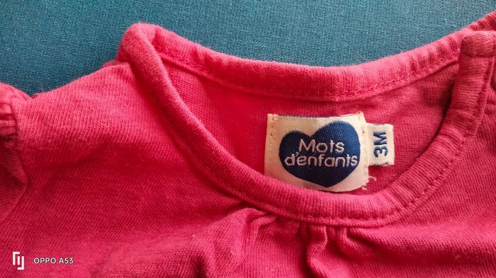 Vends 2 t-shirt fille 3 mois de la marque Mots d'enfants.