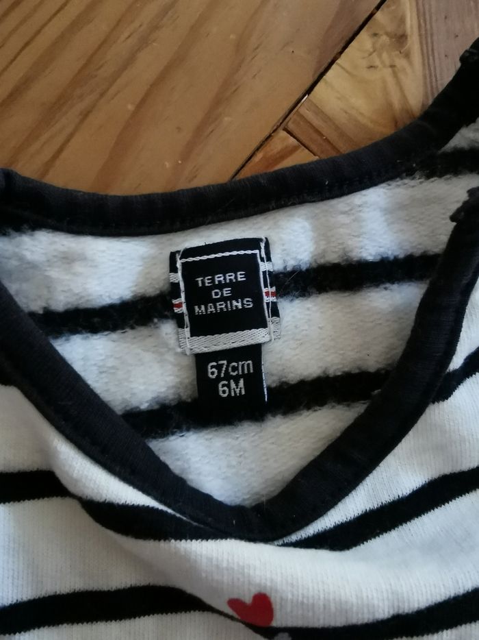 Ensemble robe marinière avec son legging Marque terre de marins Taille 6 mois Très bon état La robe est de matière chaude à l'intérieur !