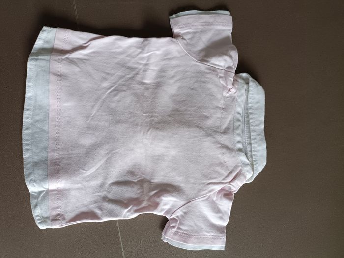 Vends t-shirt polo manches courtes rose pâle et blanc en 6 mois