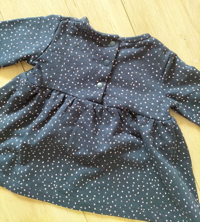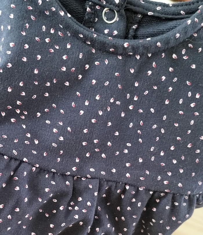 Peu portée. Aucune marque d'usure. Coloris bleu marine , motif légèrement rosé ( voir photo)