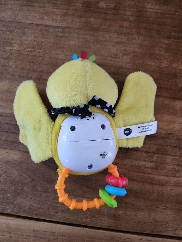 Hochet lumineux et chantant fonctionne parfaitement légère usure la peinture sur les boutons lumineux devant voir photo la peluche est dehoussable pour la lavée