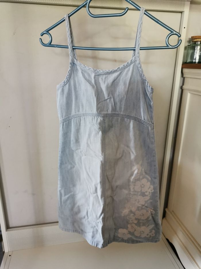Robe de marque H&M en taille 8 9 ans en jean bleu clair avec motif fleur blanche