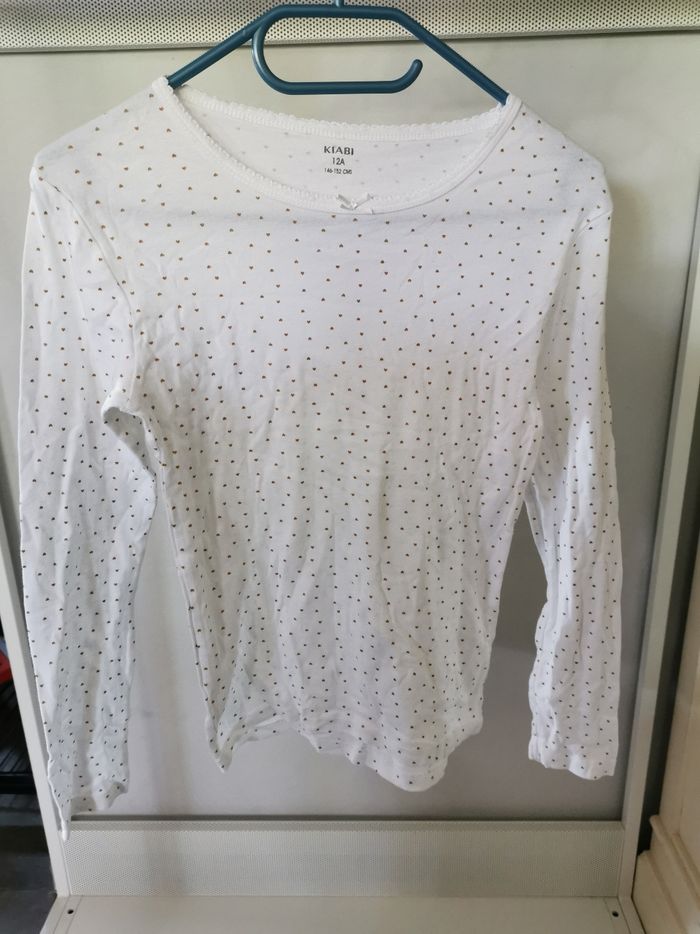T-shirt de marque Kiabi en taille 12 ans de couleur blanc avec motif cœur doré en très bon état