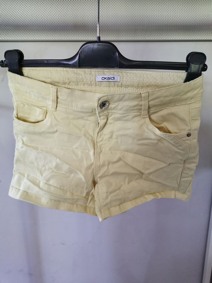 Short de marque Okaïdi en taille 10 ans de couleur jaune pâle en très bon état