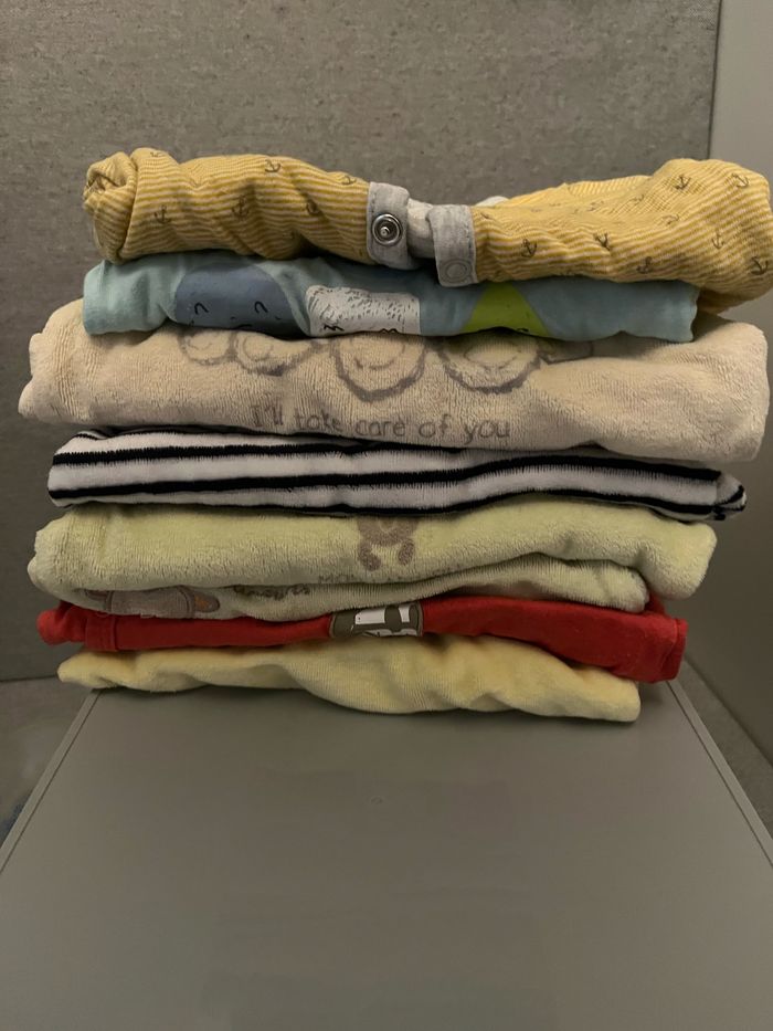 Vend lot 3 mois très peu servis. Toute marque Vêtement mixte ou garçon Body manche longue et courte Pyjama velours Jeans Tee shirt manche longue Gilet Brassière Pull Short