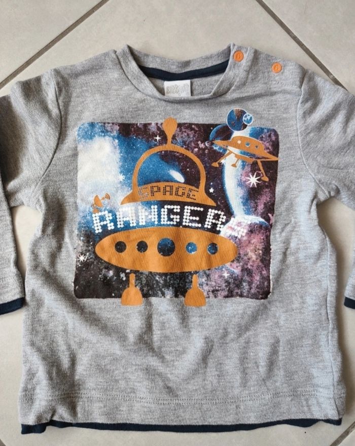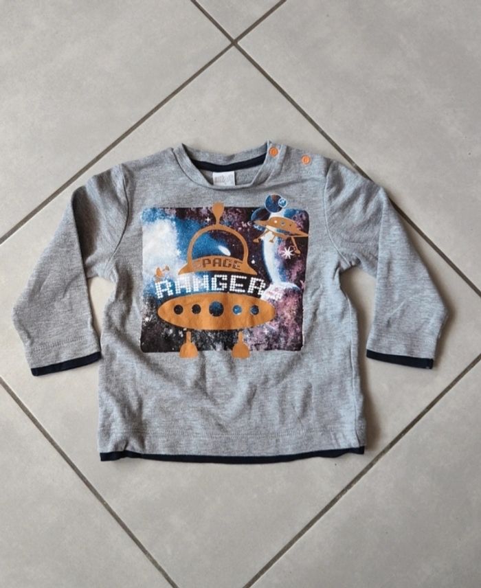 Beau tee-shirt manche longue Taille 12 mois (attention taille grand) Bon état