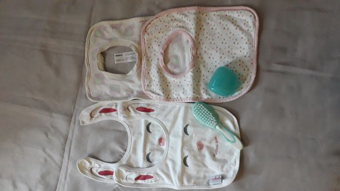 Lot de 4 bavoirs  1 boite à sucette 1 brosse - photo numéro 1