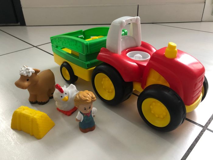 Tracteur « Little People » de Fisher-Price avec 1 Paysan, 2 Animaux et une botte de paille Entraînement de la motricité fine et de la motricité globale. Stimule l'imagination et la créativité. Compatible avec la ferme aux animaux Little People. recommandé dès 12 mois.