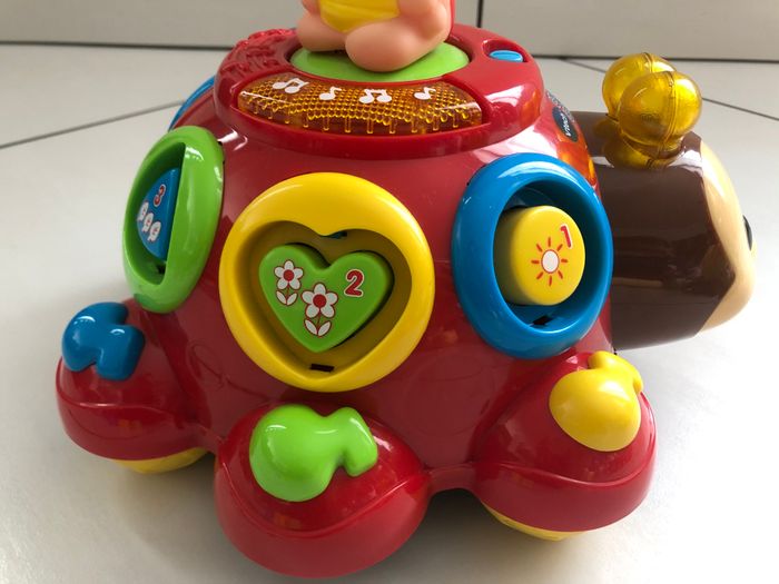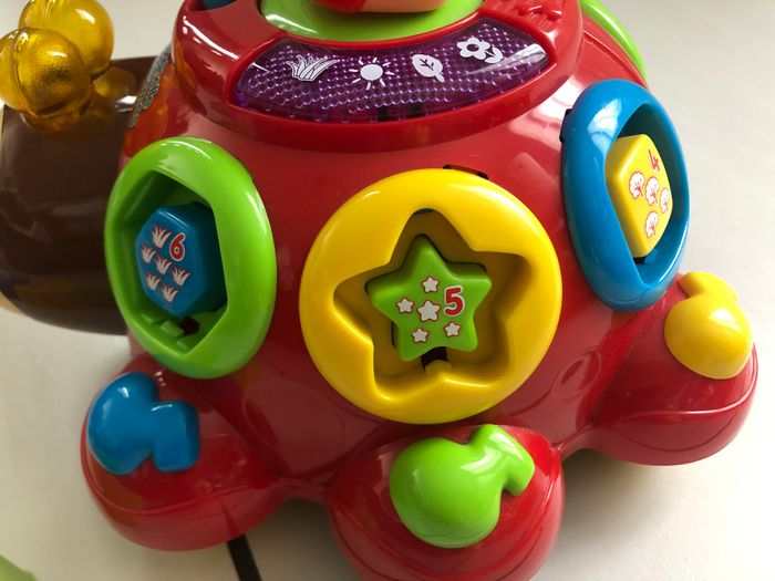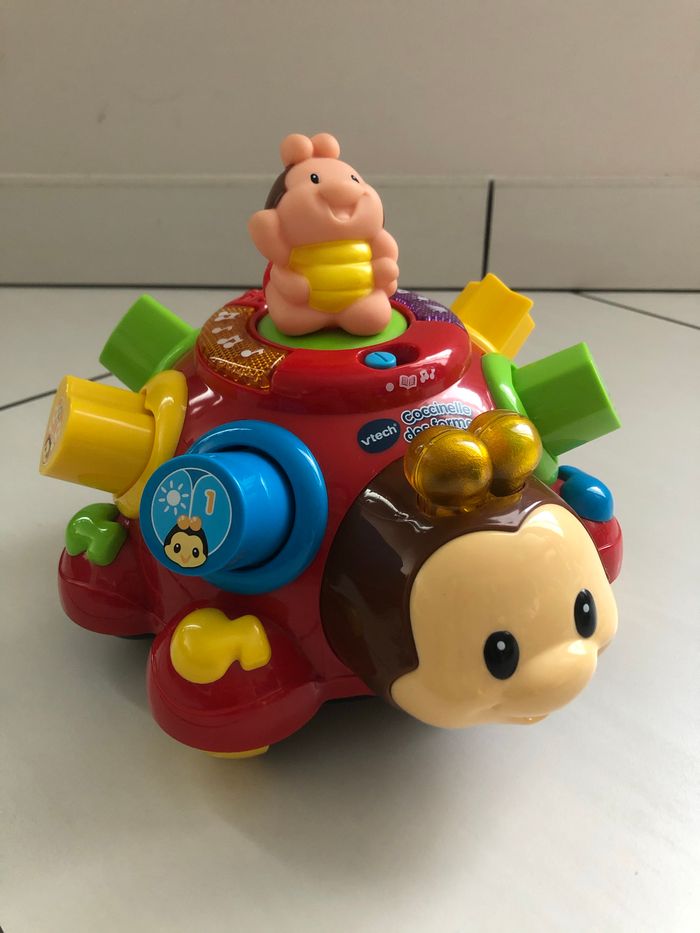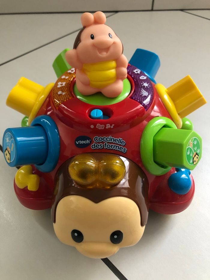 Super coccinelle des formes - 12 - 36 mois 4 formes colorées à encastrer pour apprendre les formes, les chiffres, les couleurs et le vocabulaire de la nature. Bébé coccinelle sur le dos de sa maman permet d’éjecter toutes les formes lorsqu’on appuie sur sa tête. 2 modes de jeu : Découverte et Musical